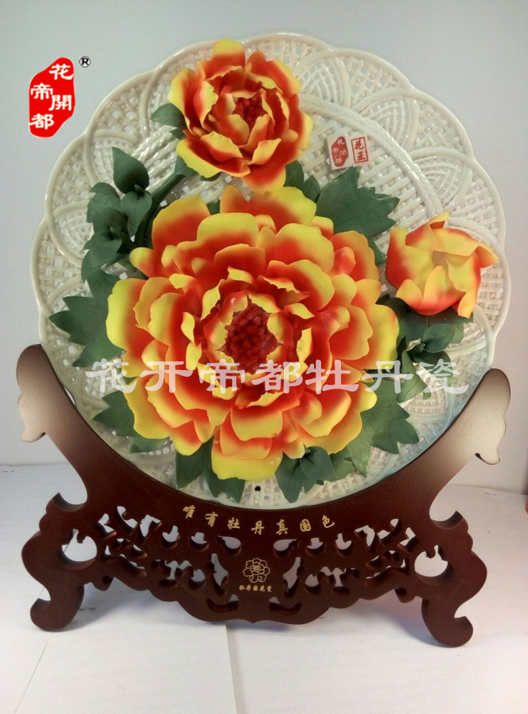 產品系列主要包括:牡丹瓷花盤、牡丹瓷屏風、牡丹瓷盆景、牡丹瓷壁掛和牡丹瓷鼎,形式多種多樣!每一件作品都是藝術的結晶,花、枝、葉均是手工捏制,造型逼真生動。