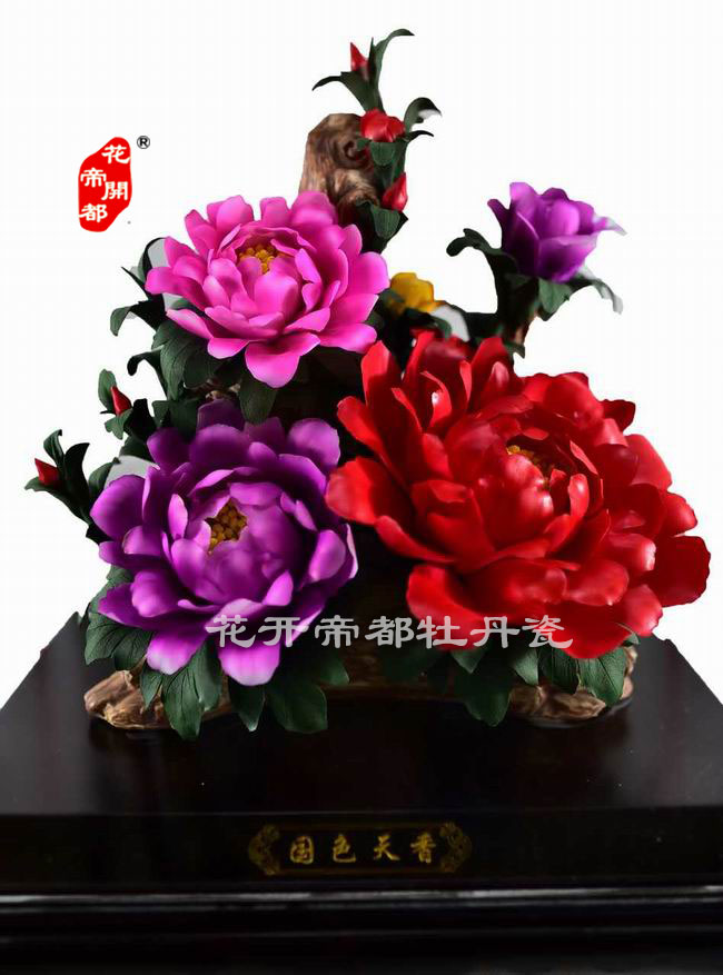 產品系列主要包括:牡丹瓷花盤、牡丹瓷屏風、牡丹瓷盆景、牡丹瓷壁掛和牡丹瓷鼎,形式多種多樣!每一件作品都是藝術的結晶,花、枝、葉均是手工捏制,造型逼真生動。